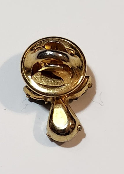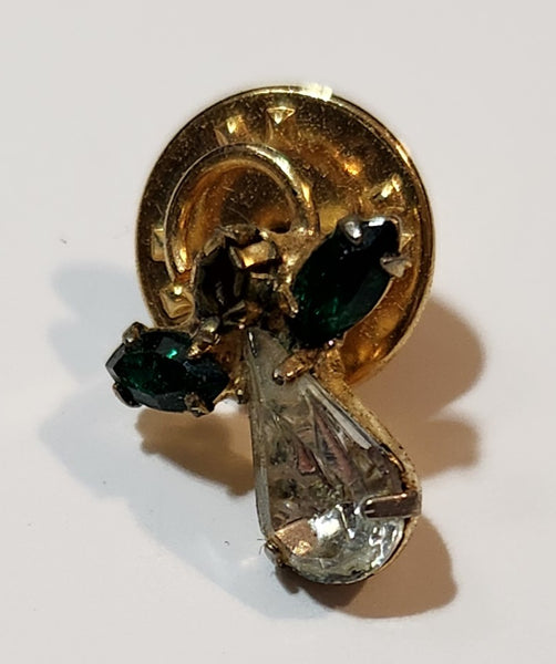 Angel Shaped Blue Green Emerald and Clear Rhinestone Gold Tone Metal Lapel Pin
