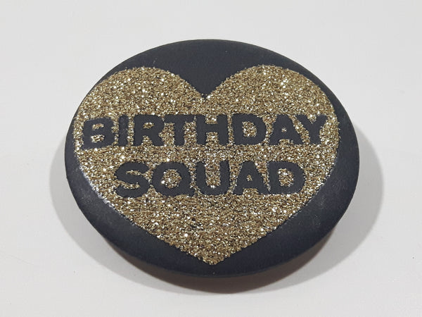 Birthday Squad Gold Glitter Heart Black 1 1/2" Round Button Pin