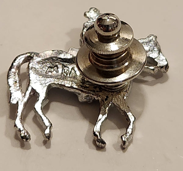 Detailed Cowboy Riding Horse Silver Tone Metal Lapel Pin