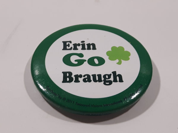 Erin Go Braugh White with Green Shamrock 1 3/8" Round Button Pin