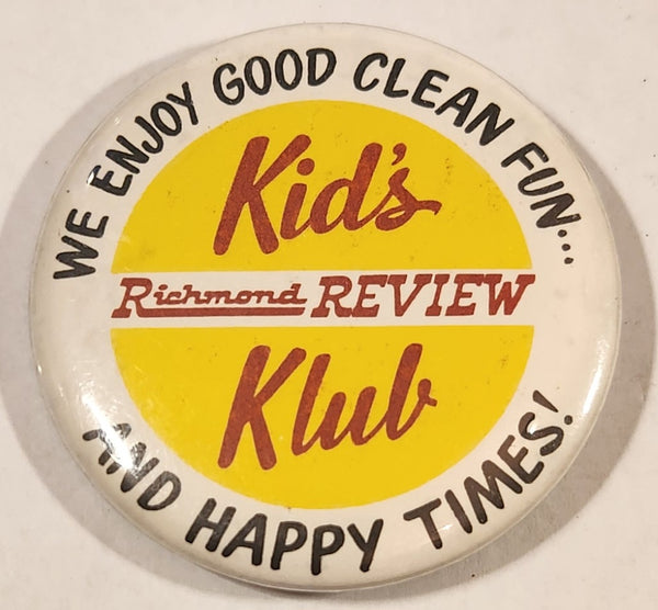 Richmond Review Kid's Klub We Enjoy Good Clean Fun.. And Happy Times! 2 1/4" Round Button Pin