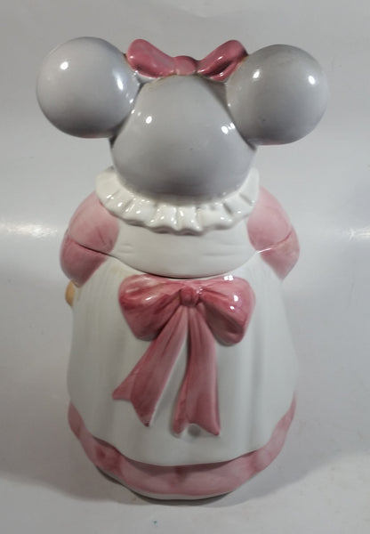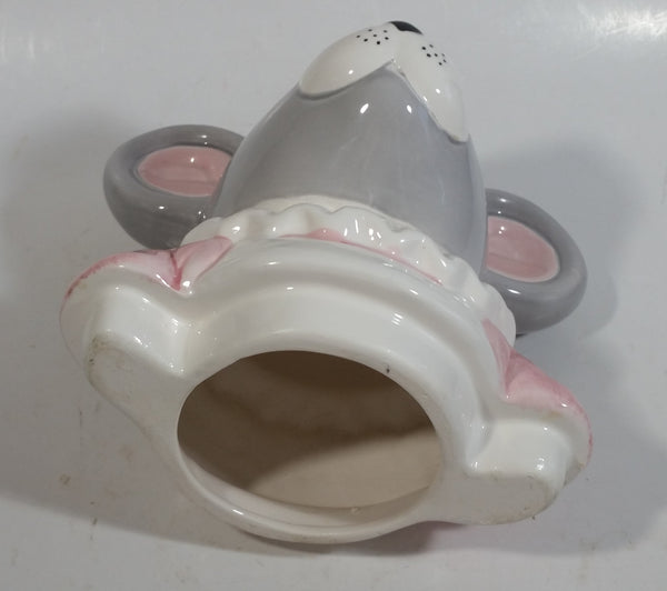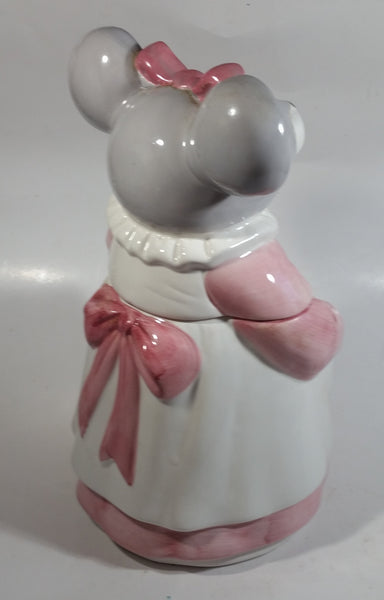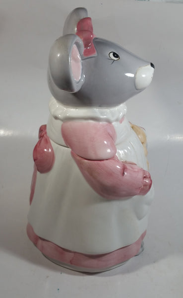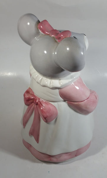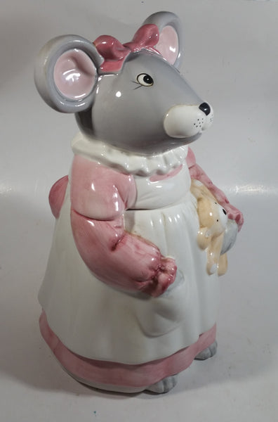 1990 House of Lloyd Grey Mouse in a Pink Dress Holding a Teddy Bear Ceramic Cookie Jar