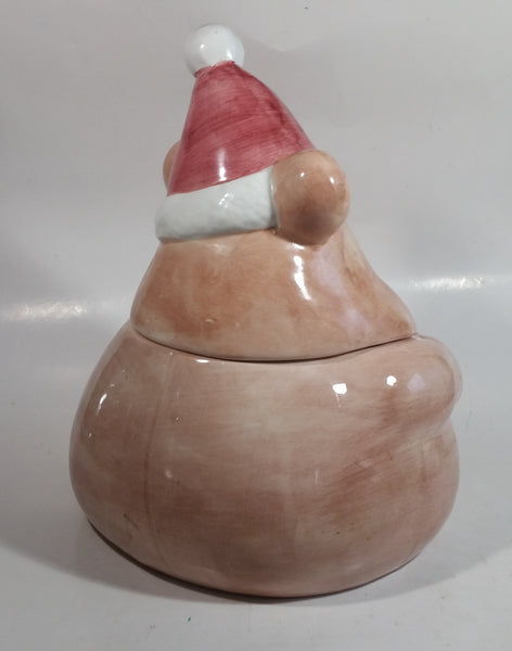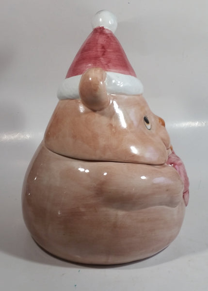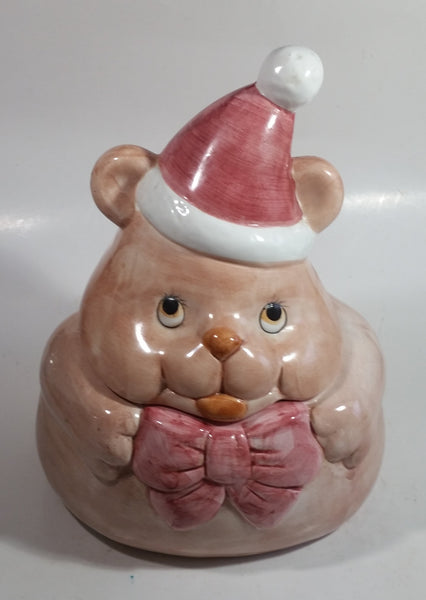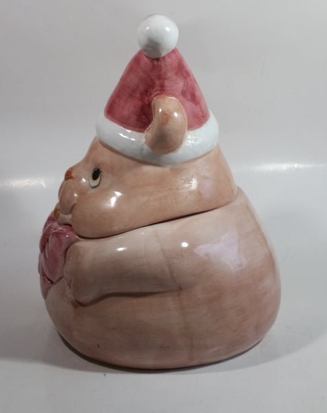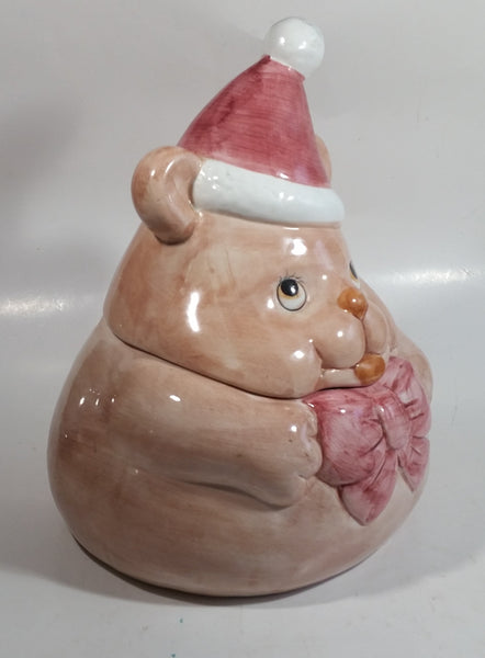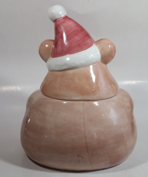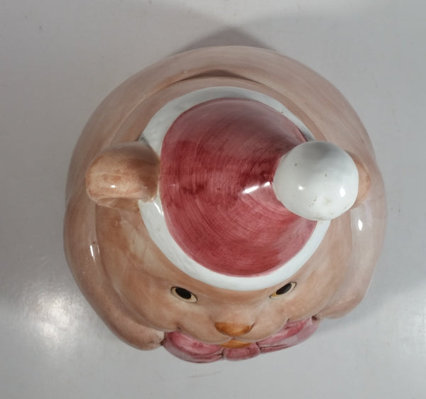Pink Bear Wearing Santa Hat Ceramic Cookie Jar
