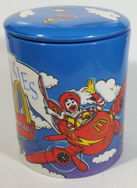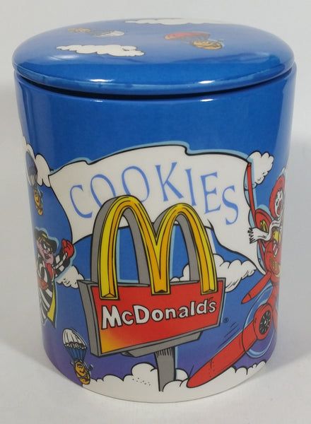 Rare 2002 McDonald's Restaurants Ceramic Round Canister Shaped Sky Blue Cookie Jar