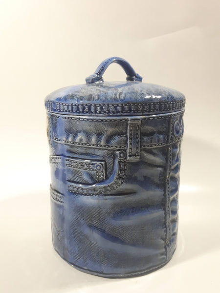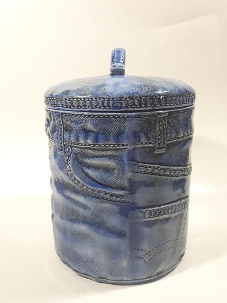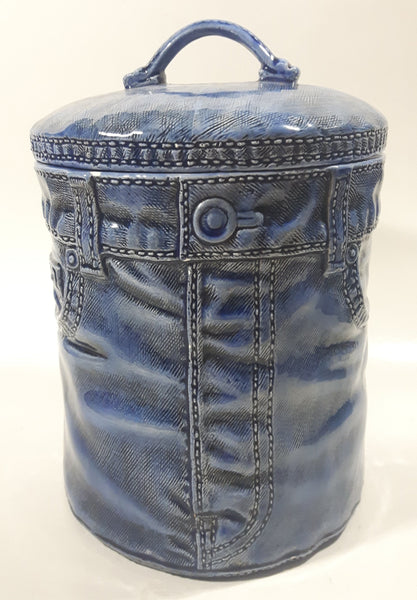 Vintage Blue Denim Jeans Style 8 1/2" Tall Ceramic Cookie Jar