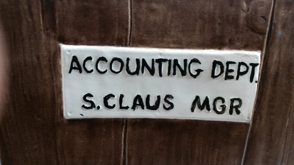 Vintage Christmas Themed Santa Accounting Dept S. Clause MGR 13" Tall Ceramic Cookie Jar
