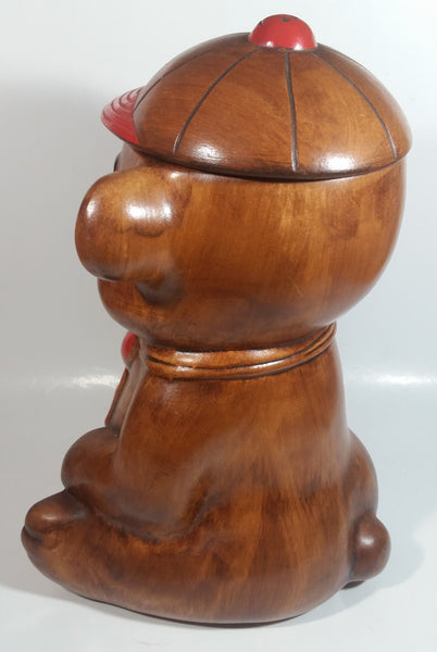 Vintage Treasure Craft Cute Brown Teddy Bear Wearing a Baseball Cap Hat 13" Tall Ceramic Cookie Jar Made in U.S.A.