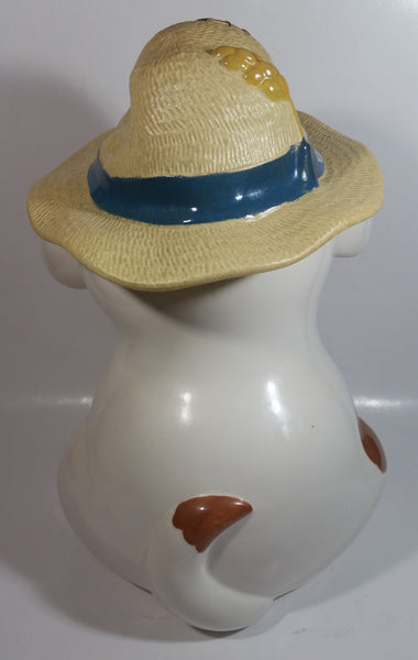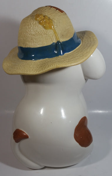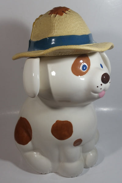 Vintage Treasure Craft Cute Farm Dog Wearing a Straw Farmer's Hat 13" Tall Ceramic Cookie Jar Made in U.S.A.