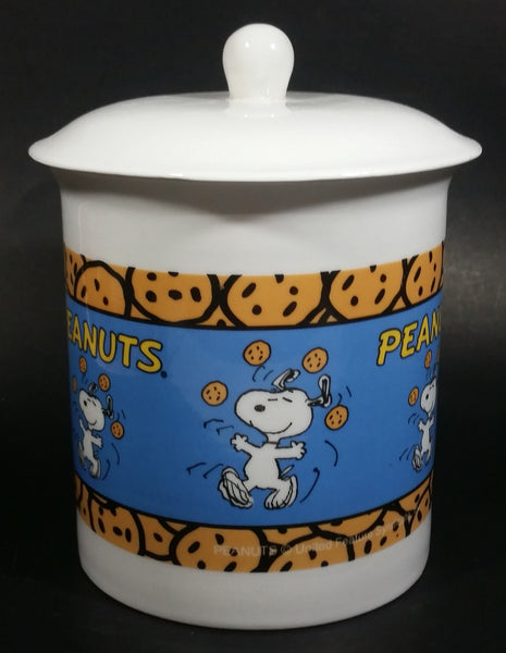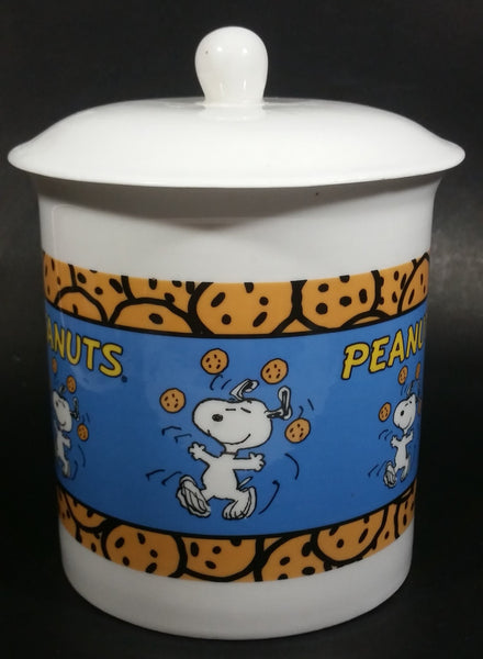 Vintage United Features Syndicate Peanuts Snoopy Cartoon Character White Ceramic Lidded Cookie Jar Collectible