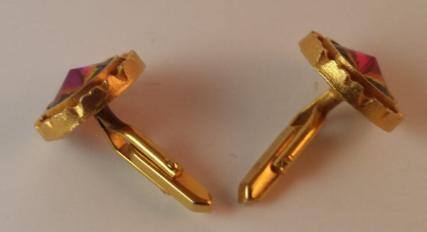 Vintage 1960s Cerise Rivoli Stone Gold Tone Cufflinks