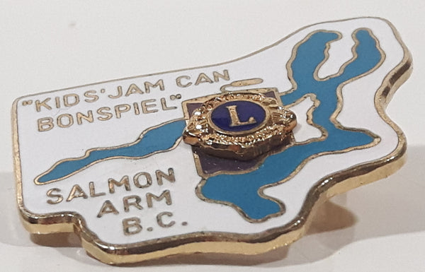Vintage Lions Club Salmon Arm B.C. "Kids' Jam Can Bonspiel" Curling Themed 1" x 1 1/4" Enamel Metal Lapel Pin