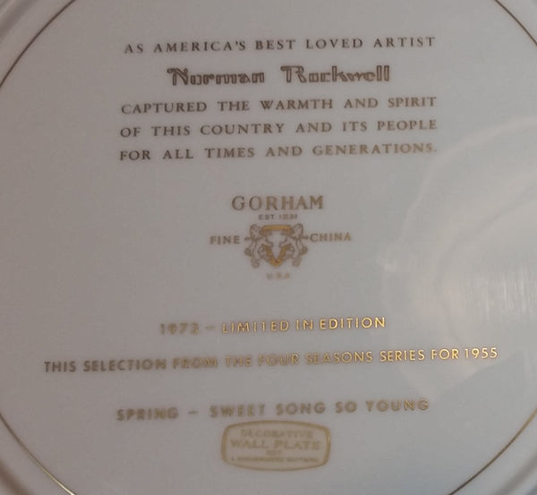 1973 Norman Rockwell Gorham Fine China - Four Seasons Series for 1955 - Spring - Sweet Song So Young Collectible Plate