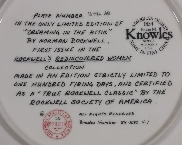 1983 Norman Rockwell Lady "Dreaming In The Attic" Bradex Knowles Collector Plate