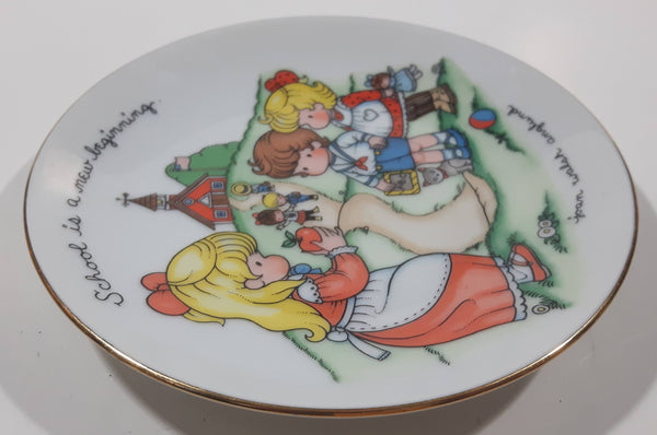 1986 Avon School Is A New Beginning 5" Diameter 22K Gold Rimmed Porcelain Collector Plate Joan Walsh Anglund