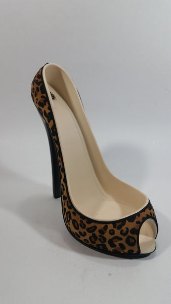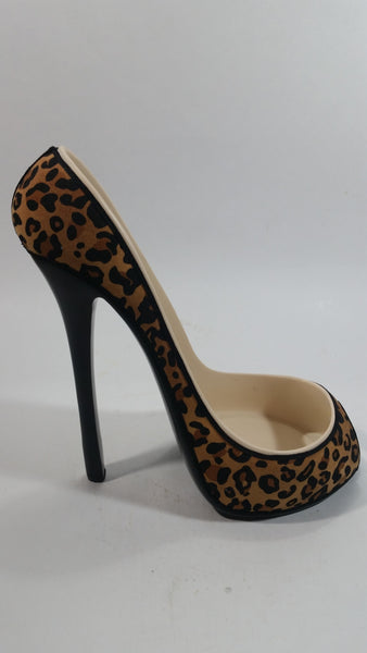 Wild Eye Designs High Heel Stiletto Leopard Print Fabric Covered Ceramic Shoe Shaped Wine Bottle Holder