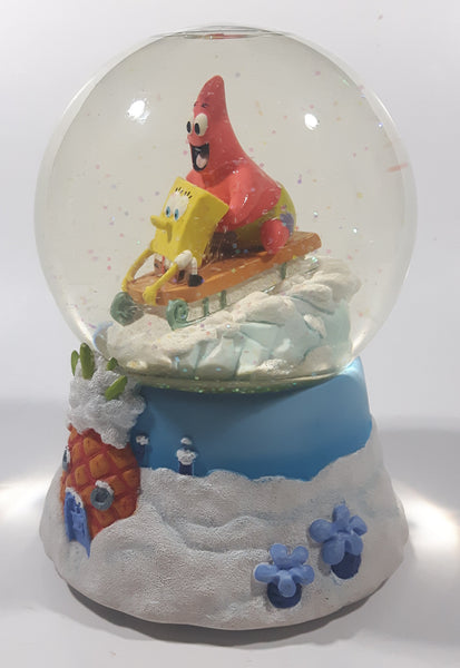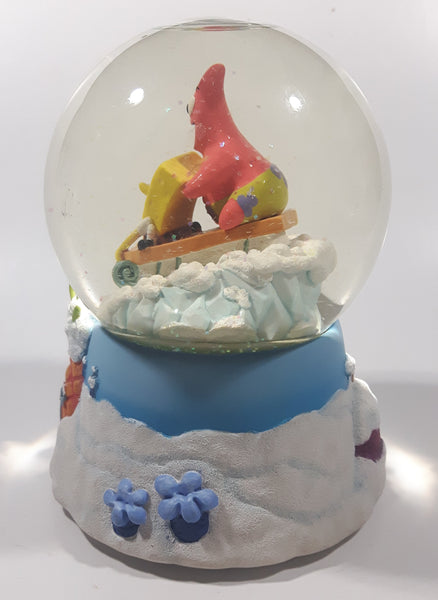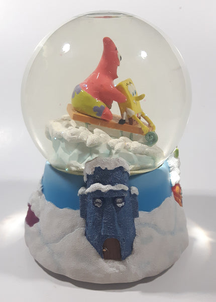 2006 Viacom SpongeBob SquarePants Windup Musical 5 1/2" Tall Glass and Resin Snow Globe Plays "Jingle Bells"