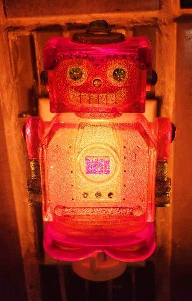 2008 UND Lab Inc. Glitter Robot Orange Red Plastic Night Light