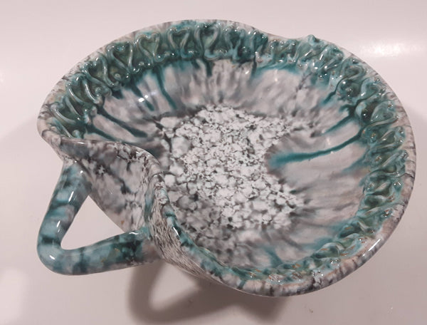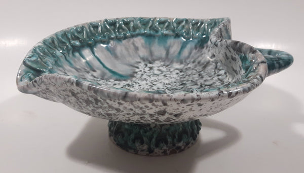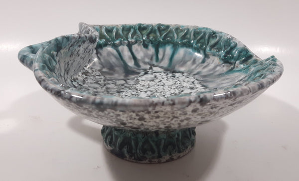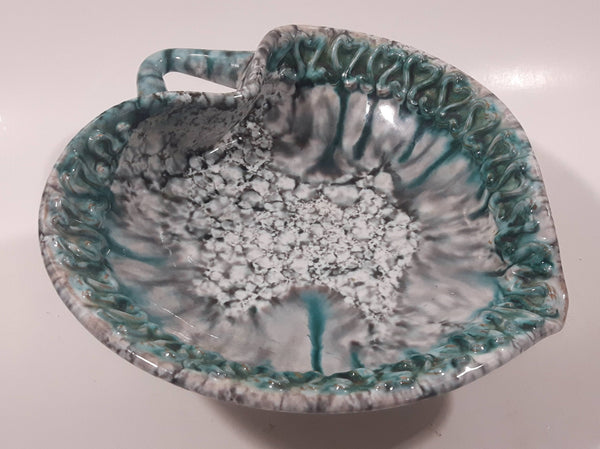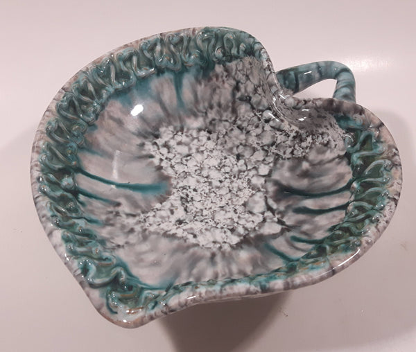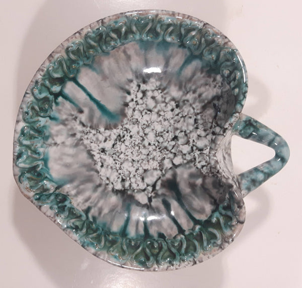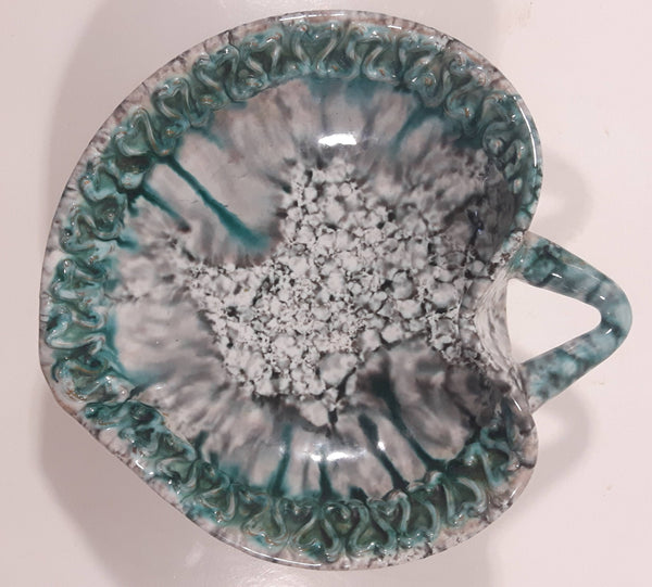 Antique Italian Embossed Teal Green and White Heart Shaped Pottery Candy Dish 6958 Italy