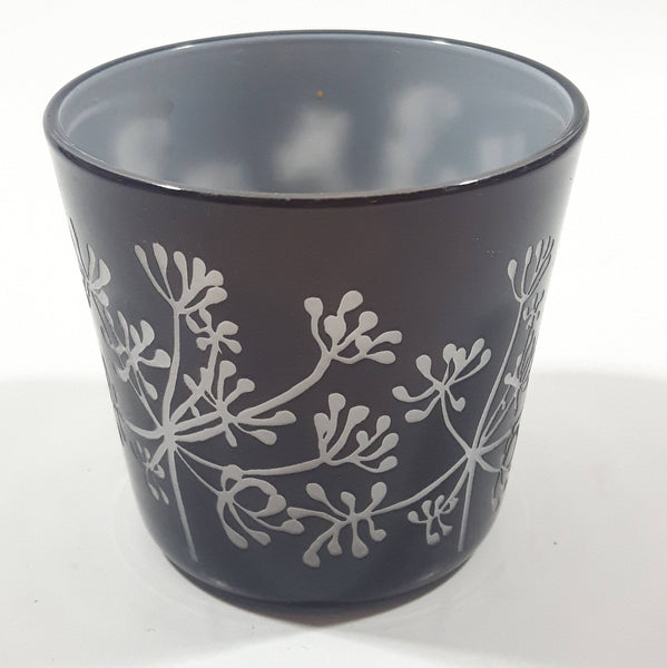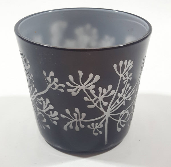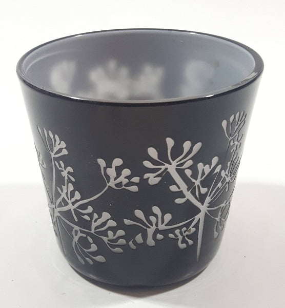 Black Engraved Flowers Glass 2 1/2" Tall Candle Holder