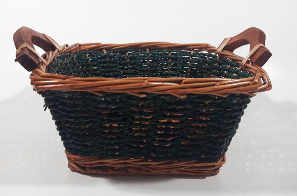 Brown and Green Woven Wicker Basket with Handles 8" x 8"