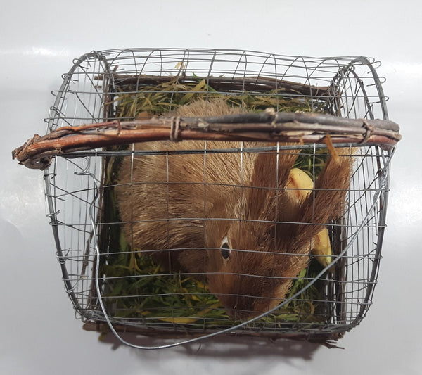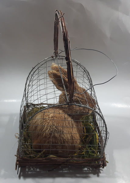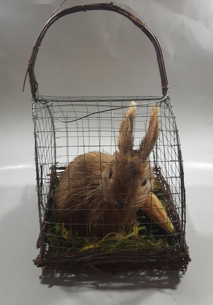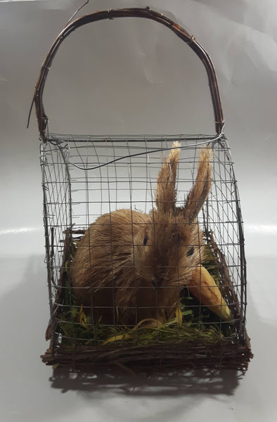 Bunny Rabbit with Carrot in Metal and Wood Cage