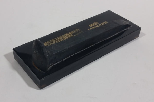 Contains an authentic railway spike cast in lucite with script on the base. The base features a Pullman Parlor Train Car. The top has the spike and features a locomotive.