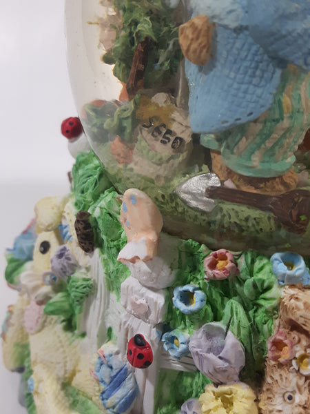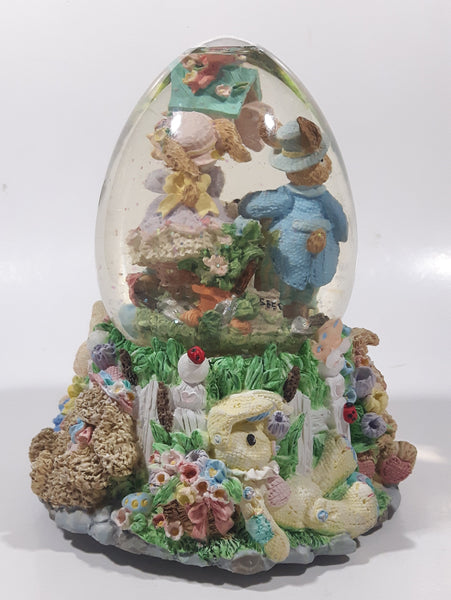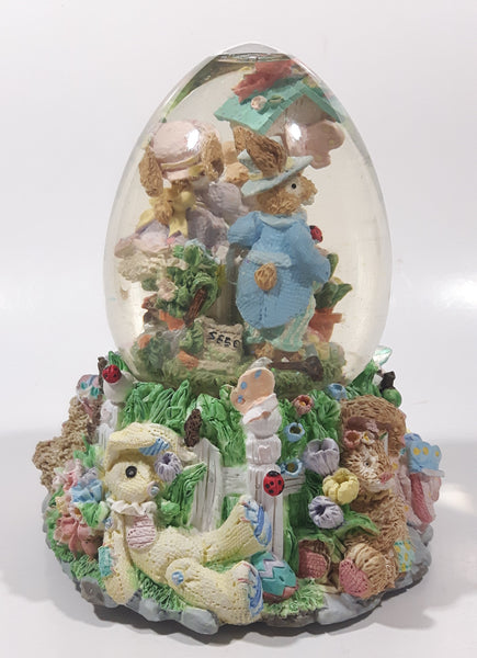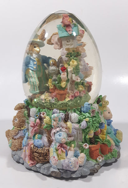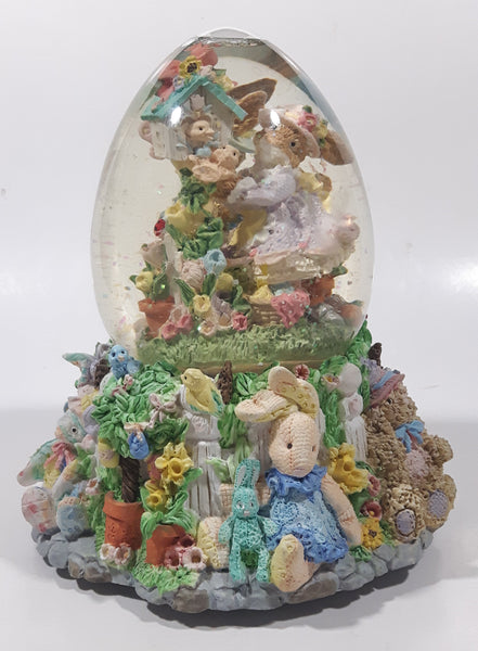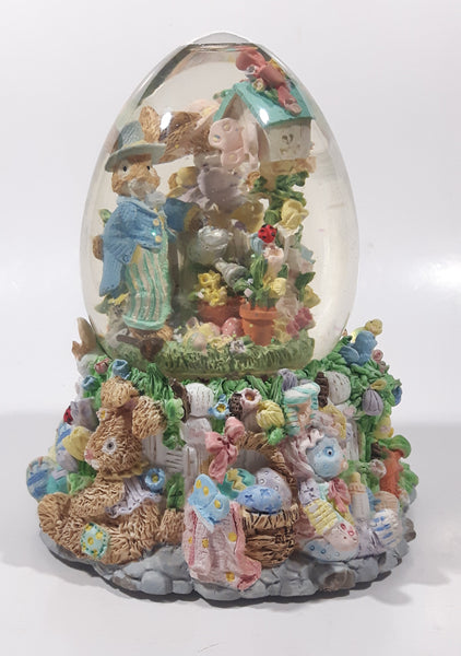 Easter Bunny Rabbit 6" Tall Resin Wind Up Musical Snow Globe