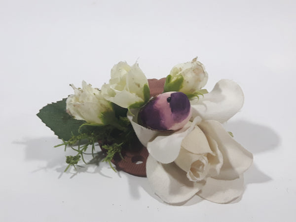 Faux Flowers and Leaves with Purple Bird Small Clay Pottery Pocket Wall Hanging