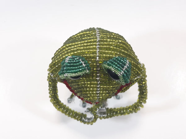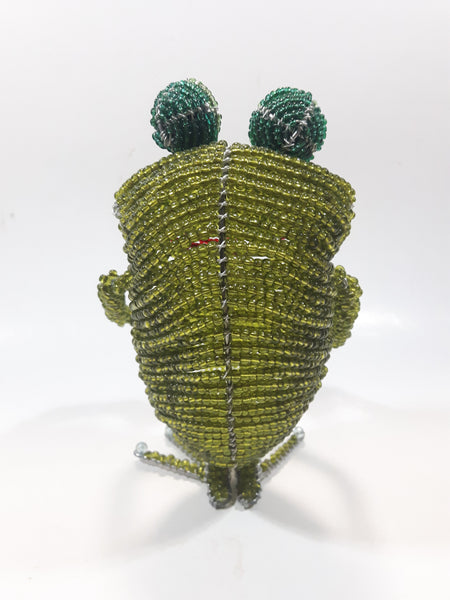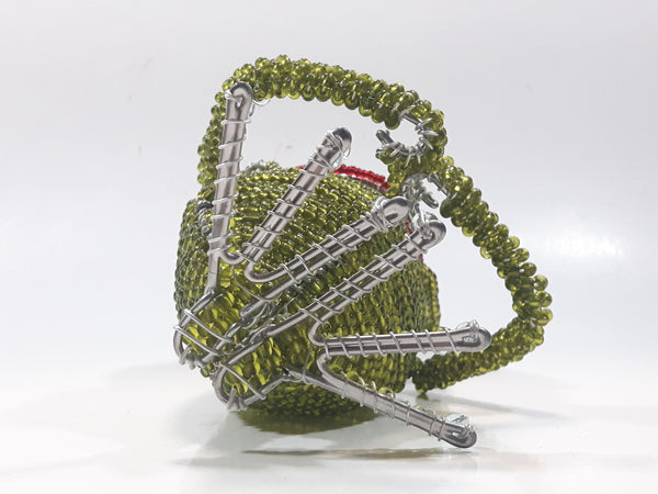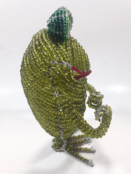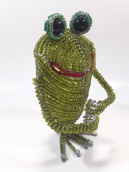 Frog with Glass Eyes Wire Frame with Green Beads Hand Crafted 7" Tall Folk Art Ornament