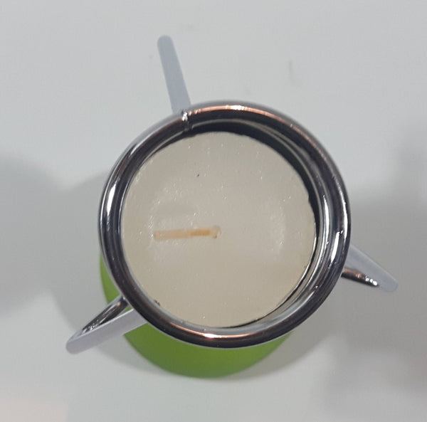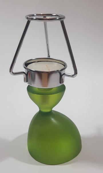 Green Glass Based Metal Top Tea Light Candle Holder 5 3/4" Tall