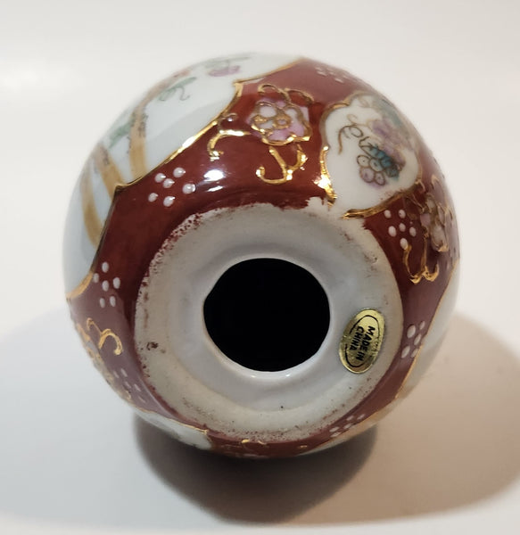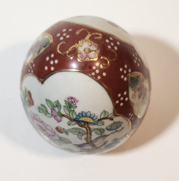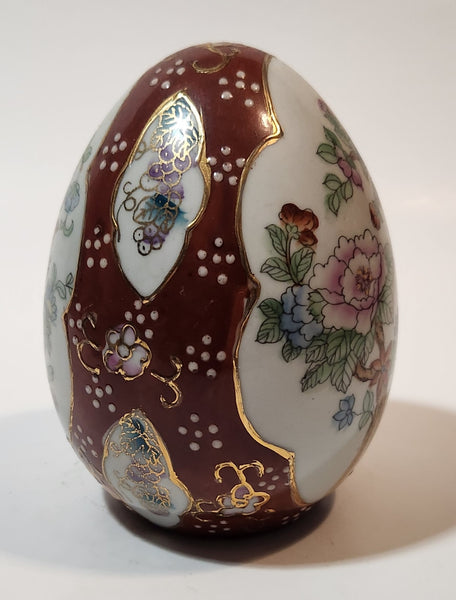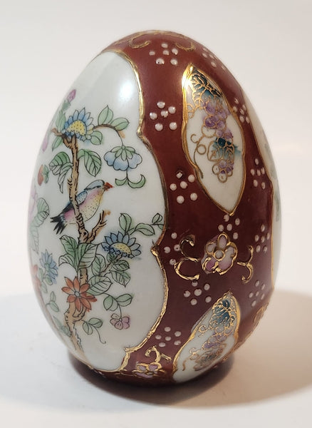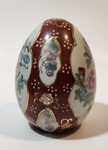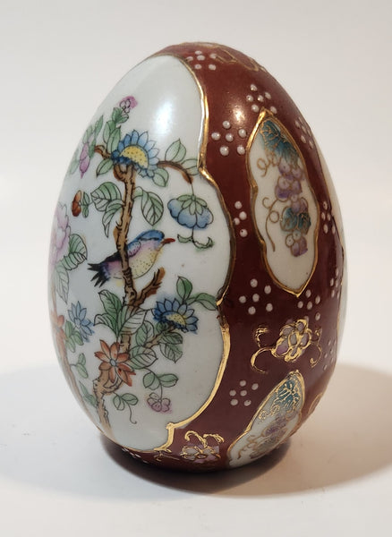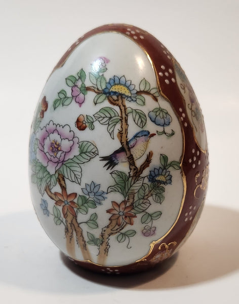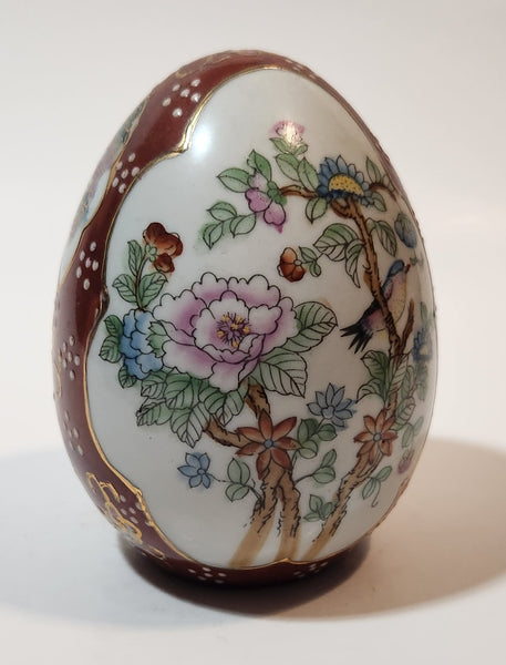 Hand Painted Flowers Birds Nature Scenery 4 1/4" Tall Porcelain Egg Ornament