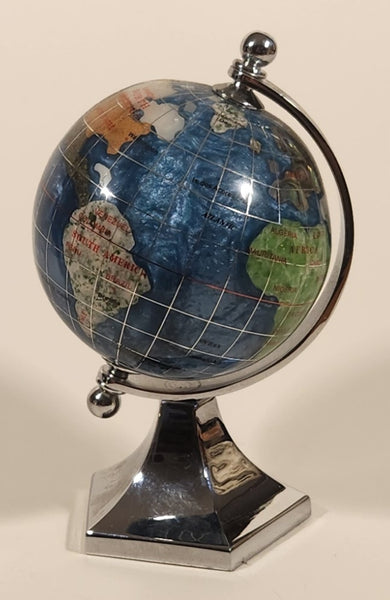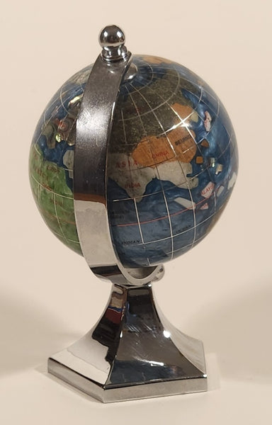 Inlaid Gem Stone Covered Blue Earth World Globe 5 1/2" Tall Desk Model