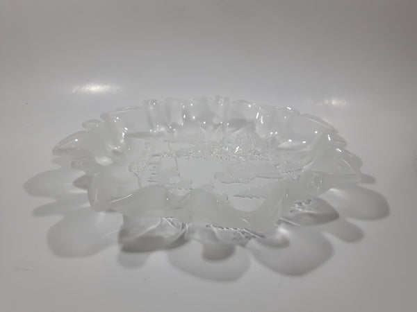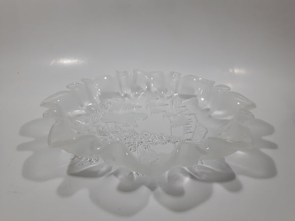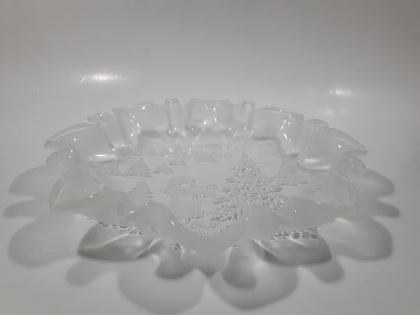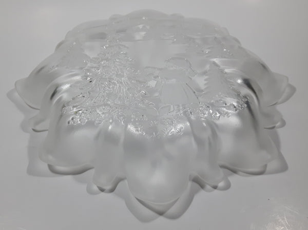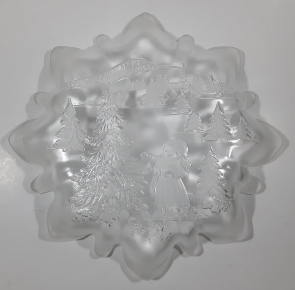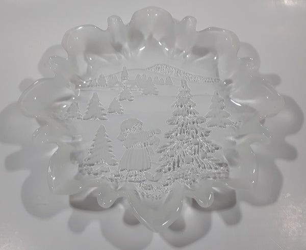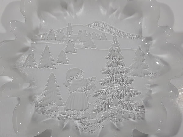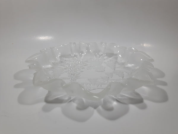 Mikasa Christmas Story Frosted Glass Child Throwing Snow Balls with Trees Embossed Glass Frilled Edge 10" Candy Dish