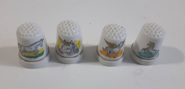 Unicorn Pegasus White Porcelain Sewing Thimbles Set of 4