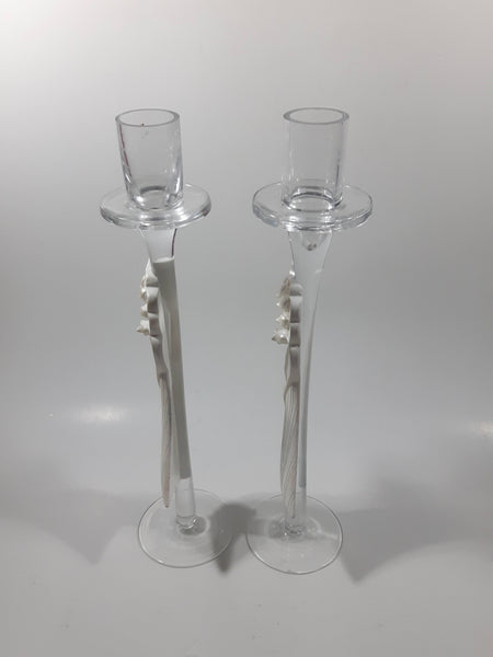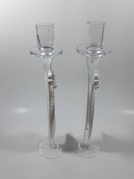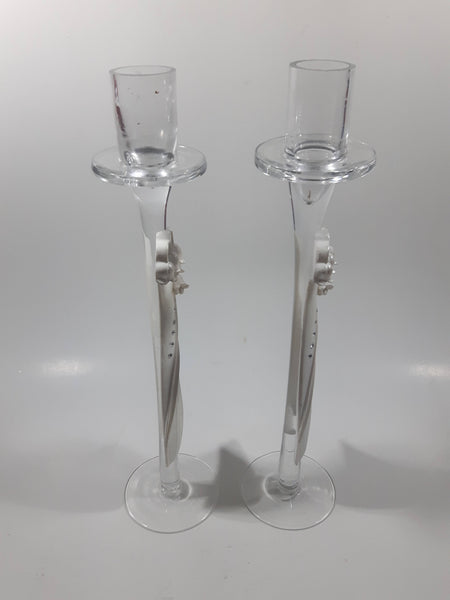 Wedding Table Centerpiece 11" Tall Glass and Resin With Rhinestone Candle Stick Holders
