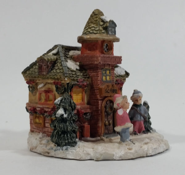 Winter Snow Village School Schoolhouse Building with Kids In Front Decorative Resin Ornament