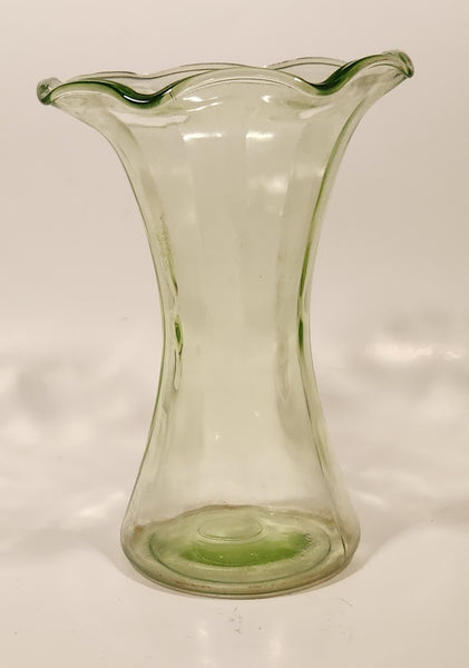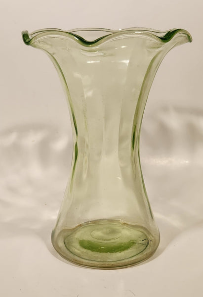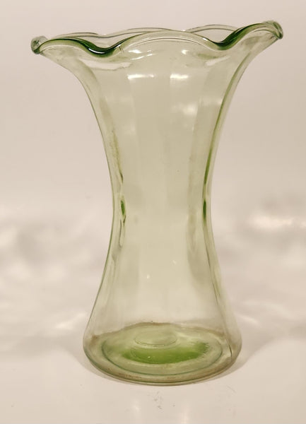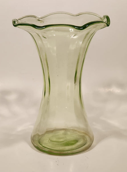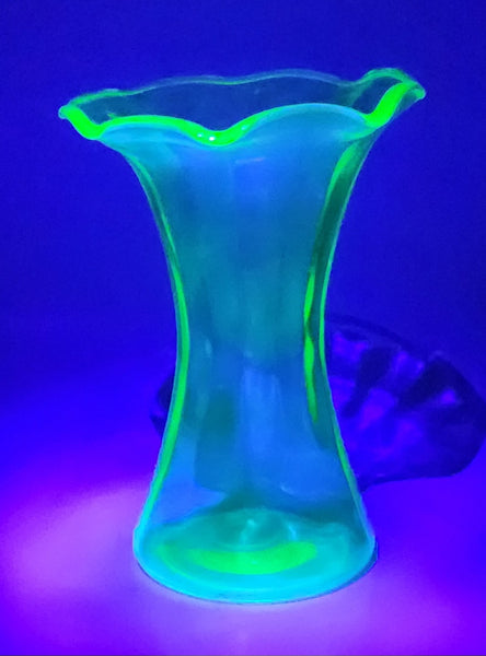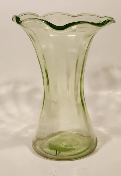 Antique Uranium Glass Ruffled 8 1/4" Tall Flower Vase