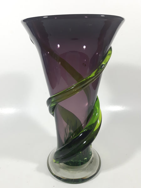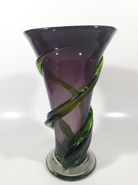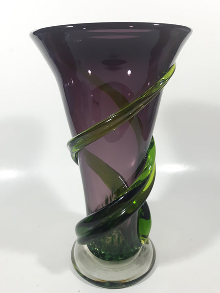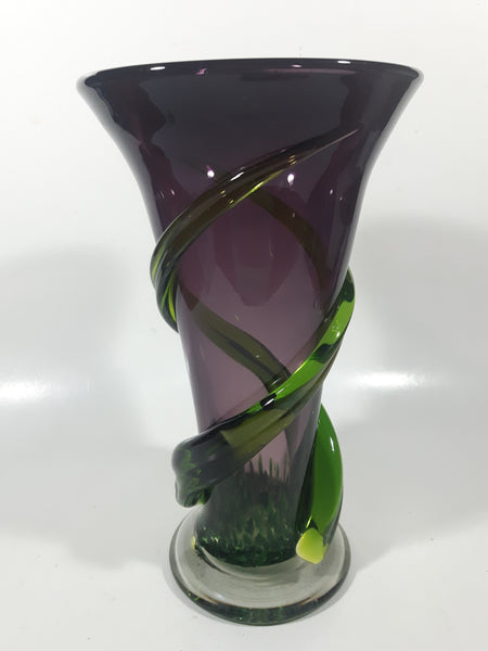 Beautiful Twisting Swirling Climbing Green Vine Purple 9 1/4" Tall Art Glass Flower Vase
