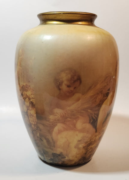 Cherub Angels 8 1/2" Pottery Flower Vase