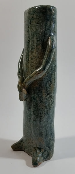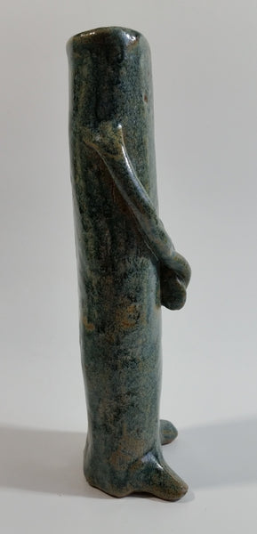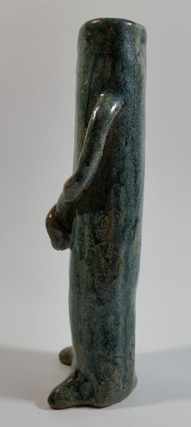 Dark Green Glazed Cactus Hands Crossed 7" Tall Pottery Vase