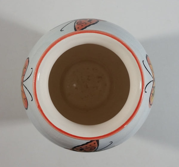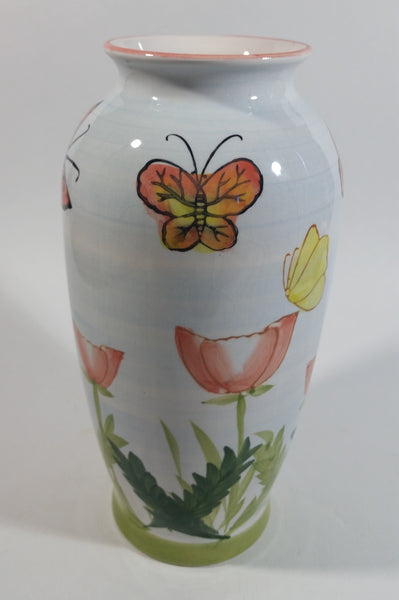 Hand Painted Butterfly and Floral Themed 8" Tall White Flower Vase