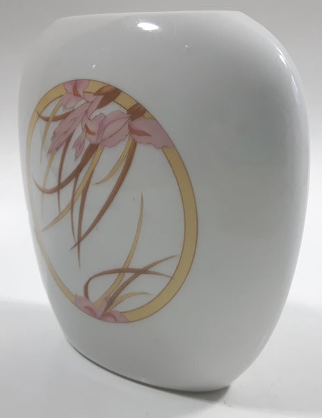 Pink Flowers 4 3/8" Tall White Porcelain Narrow Bud Vase Made in Japan