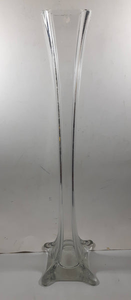 Thick and Heavy 20" Tall Eiffel Tower Clear Glass Flower Vase