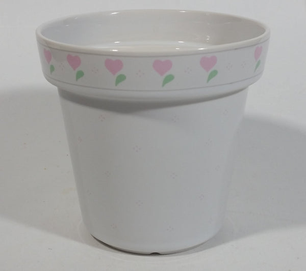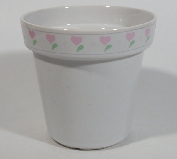White Ceramic Pink Heart Themed 4" Tall Ceramic Flower Pot Made by "Terra"