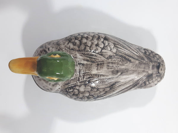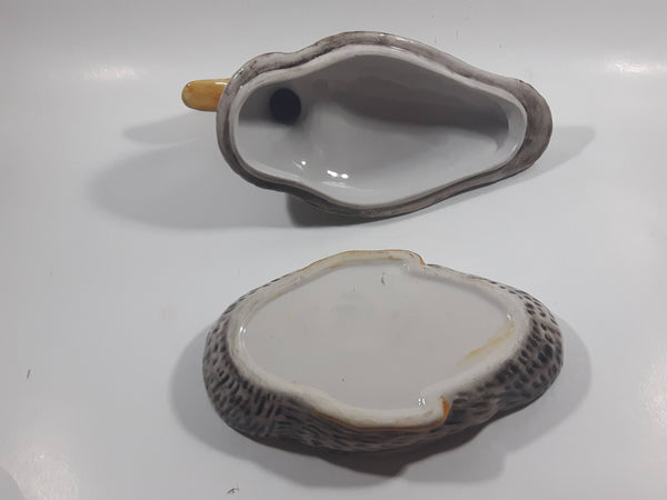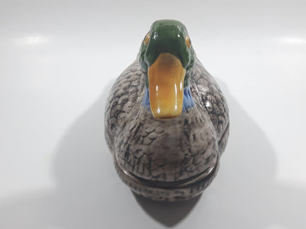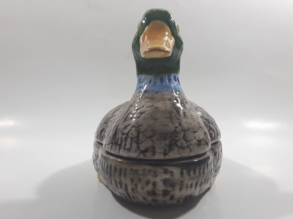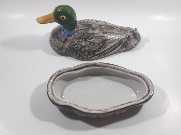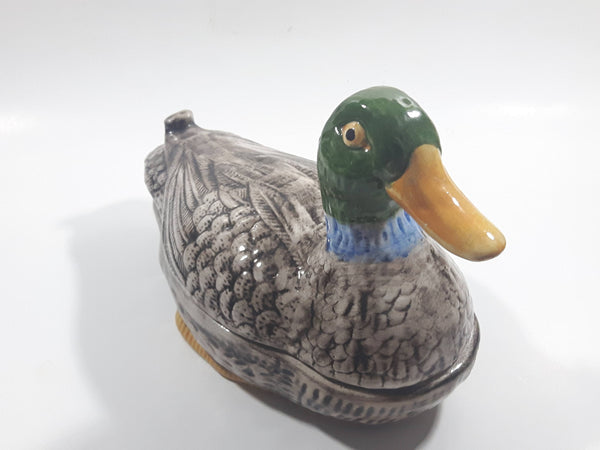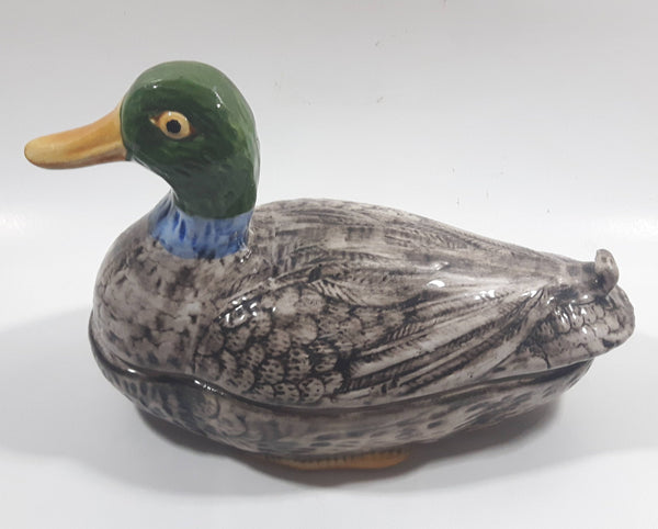 Vintage Hand Painted Mallard Duck Ceramic Pottery Trinket Box Dish with Lid 9" Long
