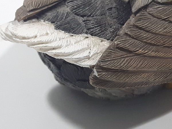 Tiny chip on one of the tail feathers. Very detailed and life like. View photos.