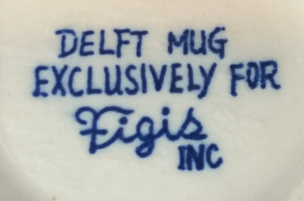 The base is marked "Delft Mug Exclusively For Figis INC".