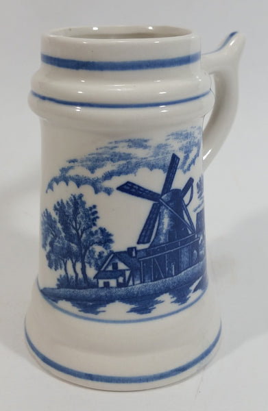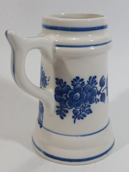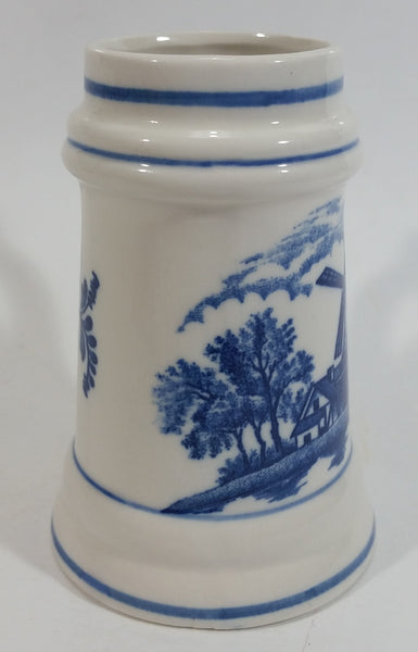 Delft Blue Style Windmill Decor Dutch Scenery with Flowers 4" Tall Ceramic Beer Stein - Unknown Maker