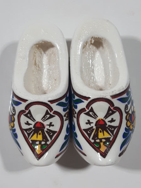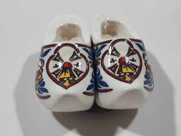 Holland Windmill Themed Hand Painted Colorful Miniature Ceramic Clog Shoe Set Fridge Magnet