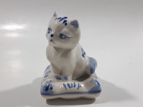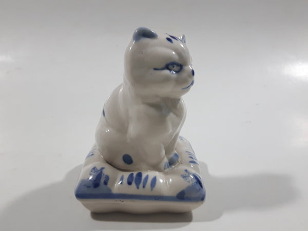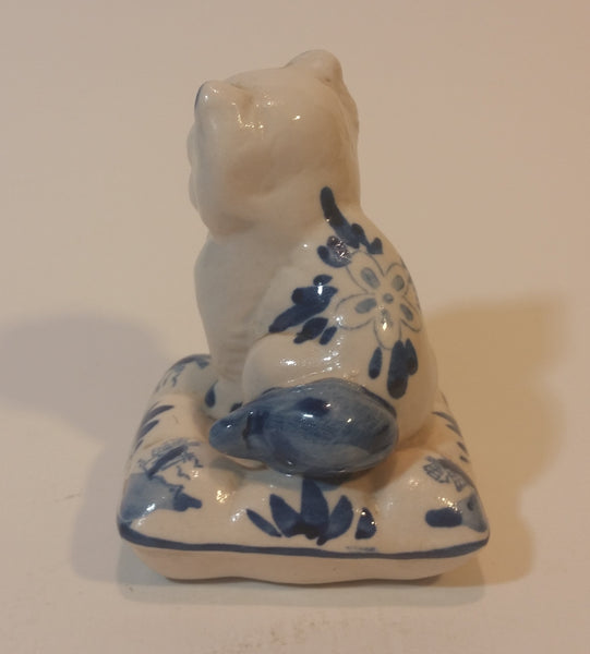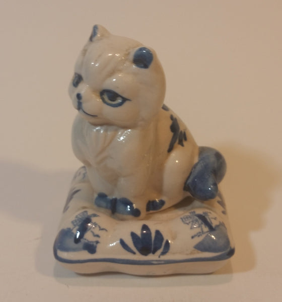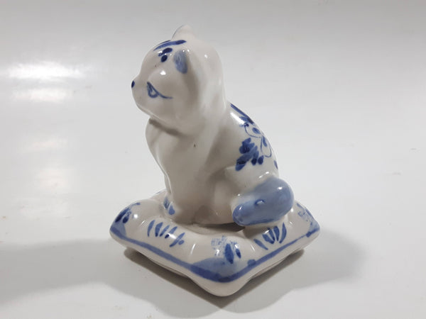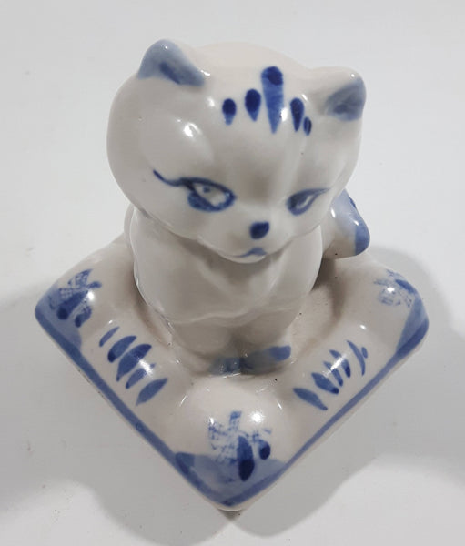 Vintage Delft Holland Cat on Windmill Pillow Figurine